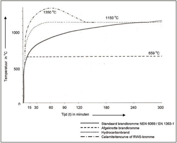 Efectis heeft twee type ovens gemaakt: een lichtere oven kan een temperatuur tot maximaal 1150°C aan, waardoor het de brandveiligheid kan testen met betrekking tot de standaard-brandkromme. De zwaardere oven kan de hoge Rijkswaterstaat-brandkromme aan, die een maximale temperatuur van 1350°C kent (zie hiernaast). Met de zwaardere oven is de Maastunnel getest.