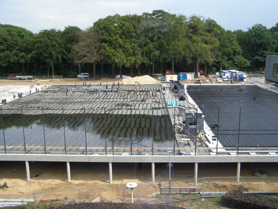 De kratjes zorgen enerzijds voor een vlakke ondergrond voor het sportveld. Anderzijds dienen de kratjes als drainage. Marc van Beurden, coördinator Faciliteitenbeheer Sportcomplex Radboud Universiteit: “Een paar weken na oplevering hebben we meteen al het ultieme testmoment meegemaakt. Na fikse hoosbuien stonden alle sportvelden op het sportcomplex blank. Dit veld was echter na tien minuten alweer bespeelbaar, terwijl dat bij de rest nog twee uur duurde! Dat komt door de krattenondergrond die zorgt voor een perfecte doorstroming. De keuze voor de lichtgewicht kratjes, maakt een zeer gebruiksvriendelijke en efficiente indeling van de parkeergarage mogelijk.”
