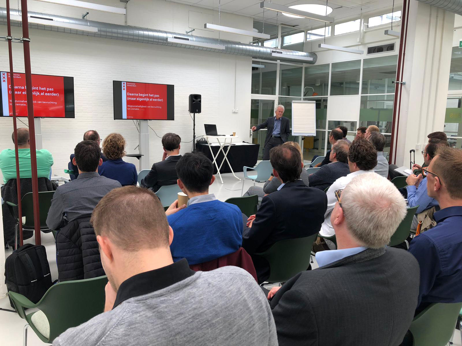 Op dinsdag 21 mei 2019 kwamen de platformleden bijeen voor een sessie over de borging van tunnelveiligheid in de exploitatiefase. Er waren sprekers vanuit vier perspectieven: gemeente Amsterdam (Frans Cornelis), Rijkswaterstaat (Ron van den Ende), Agentschap wegen en verkeer Vlaanderen (Kris van Boven) en Arcadis/Waterwolftunnel (Richard Bormans). Zij gingen onder meer in op aspecten vanuit techniek, organisatie en procedures. De organisaties hebben elk hun eigen aanpak, maar er werden ook rode draden zichtbaar. We kunnen duidelijk van elkaar leren. Tot slot was er de gelegenheid om te netwerken.