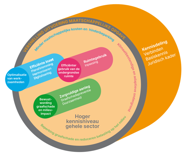 Samen met partners en de achterban is een visie programma opgesteld, dat sturing geeft aan het optimaal aanpakken van kabels-en-leidingengerelateerde opgaven richting 2030. In deze visie zijn drie overkoepelende doelen beschreven: efficiënte programmering, optimale ordening en beheersbare en robuuste uitvoering.