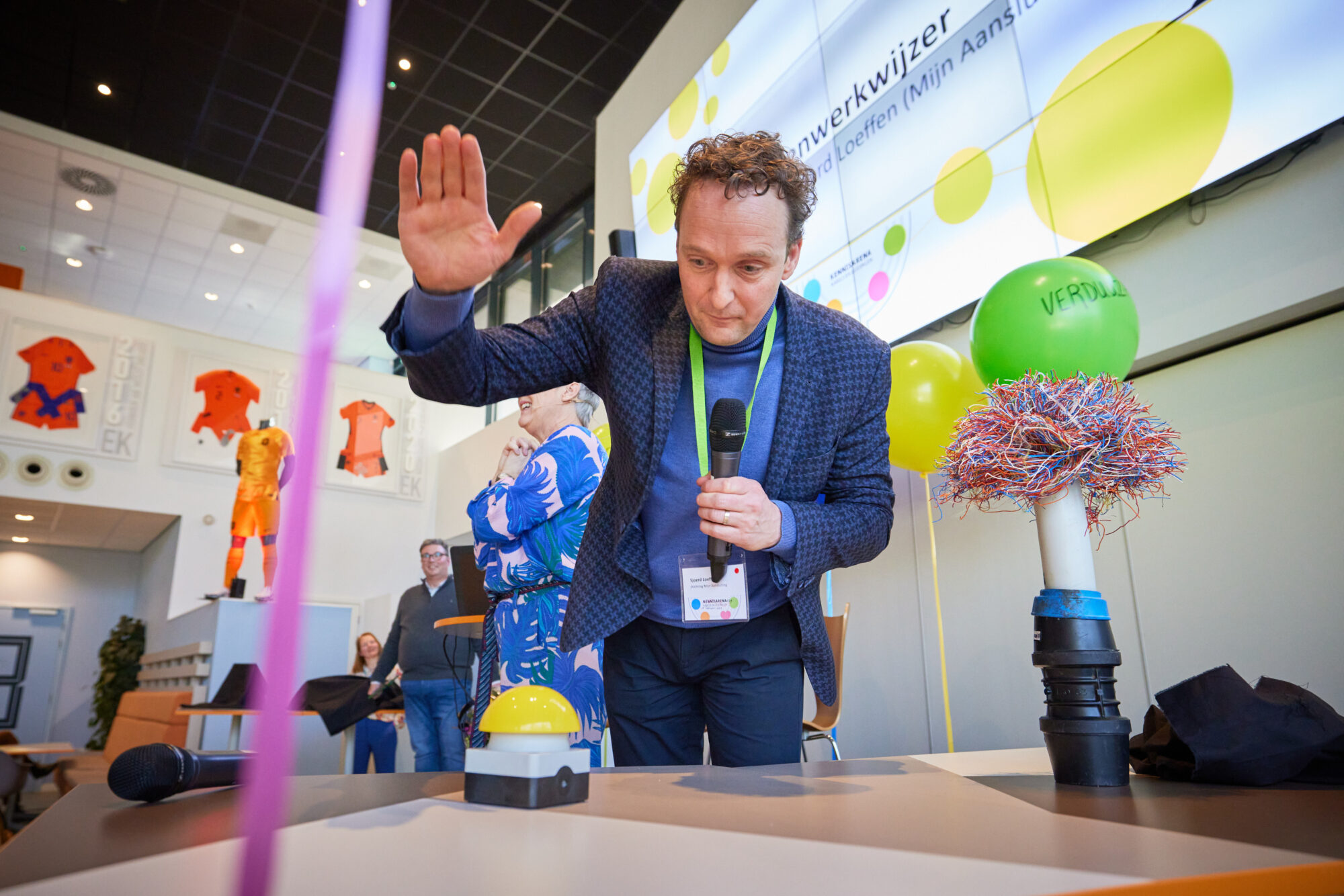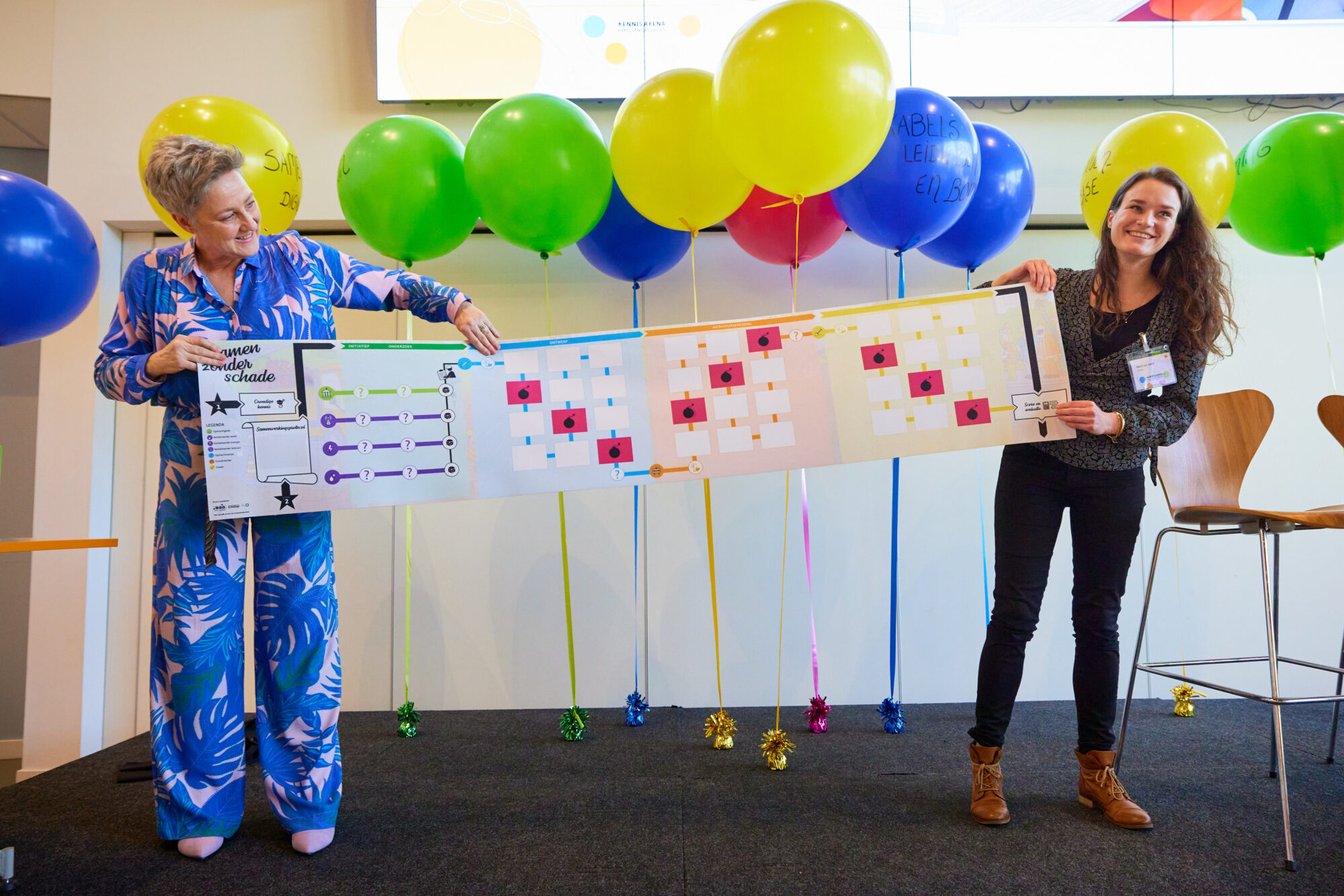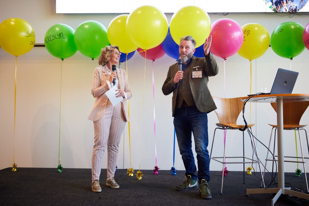 Na een gezamenlijke lunch startte het programma op het hoofdpodium. Hier was aandacht voor de nieuw opgeleverde deliverables, daarnaast werd het eerste exemplaar van het nieuwe Samen-zonder-schadespel getoond, konden aanwezigen live en online hun fabels-en-feitenkennis testen (zie hieronder) en werd alles over lopende en nieuwe samenwerkingen binnen de Kennisarena verteld.