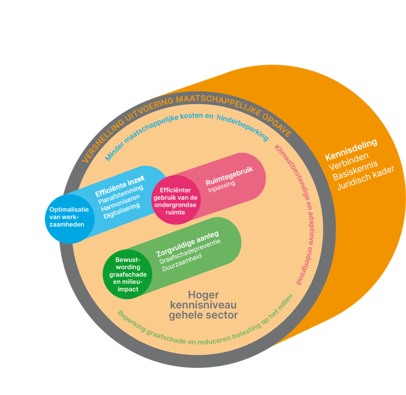 Binnen dit thema houden we ons bezig met netwerken en het ter beschikking stellen van basisinformatie die mensen nodig hebben om effectief te kunnen functioneren en samenwerken in de wereld van kabels en leidingen. Dit is tevens een overkoepelend doel, omdat dit de basis is om succesvol te kunnen toewerken naar de andere doelen.