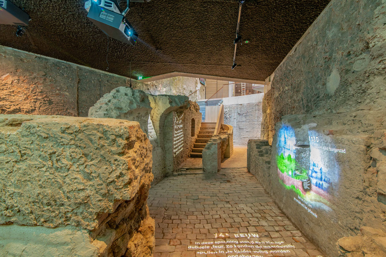Behoud van archeologie in situ en deze opnemen in de aangepaste plannen, betekende dat het aantal vierkante meters dat voor het totaalprogramma nodig was, onder druk kwam te staan. Marc en Marlène: “Dat konden we ruimtelijk gezien oplossen, maar daarmee gingen we wel over de oorspronkelijke projectgrenzen heen. Er was zelfs een aanpassing van het bestemmingsplan nodig. De bouw kwam een half jaar stil te liggen. Tegelijkertijd fungeerden de onverwachte vondsten als vliegwiel voor het project. Er ontstonden nieuwe mogelijkheden, zoals het aan de binnenzijde van de CSM-wand zichtbaar maken van dwarsdoorsneden van oude beerputten en de archeologische jaarringen in de ondergrond. We ontwierpen een nieuwe routing, waarbij je de historie ziet en voelt. Het feit dat je door al die tijdslagen kunt dwalen en die kunt beklimmen en aanraken, maakt dit museum zeer bijzonder.”