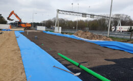 De afgelopen twee jaar zijn er in de InnovA58-proeftuin van Rijkswaterstaat door Gebr. Van Kessel een achttal verschillende innovaties aangebracht en getest, waaronder het opvangen van water direct ónder de snelweg. “AquaBASE is een funderingsmateriaal dat op een hoog niveau water onder de weg opvangt”, zegt Ignas Ubbink, project- en testcoördinator InnovA58 namens Gebr. Van Kessel. Hij doelt niet alleen op de hoge kwaliteit, maar ook op het niveau waarin het water wordt opgeslagen, redelijk dicht onder het maaiveld. “Met infiltratiekratten ga je, net als met infiltratiebuizen, veel dieper de grond in en zijn bovendien de mogelijkheden voor hergebruik van het water beperkt. Daarnaast zijn infiltratiekratten niet geschikt voor gebieden met een hoge grondwaterstand. Technisch gezien wordt met AquaBASE het water van de snelweg opgevangen, gezuiverd en kan het via vrij verval op verschillende manieren worden gedistribueerd. Naar een watergang of zelfs naar een nabijgelegen gebouw om als spoelwater te worden gebruikt.”