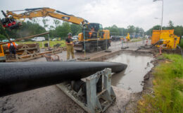Lakeman: “Tijdens het intrekken van de leiding moesten we tweemaal plaatsmaken voor hulpdiensten. We hebben de leiding extra hoog opgetrokken, zodat de ambulance eronderdoor kon. We hebben het werk niet hoeven stoppen. Dat kon alleen maar doordat we in het ontwerp van de intrekboog al rekening hadden gehouden met deze specifieke situatie. Je moet immers goed weten op welke plek je de leiding zonder schade kunt oppakken en optillen.”