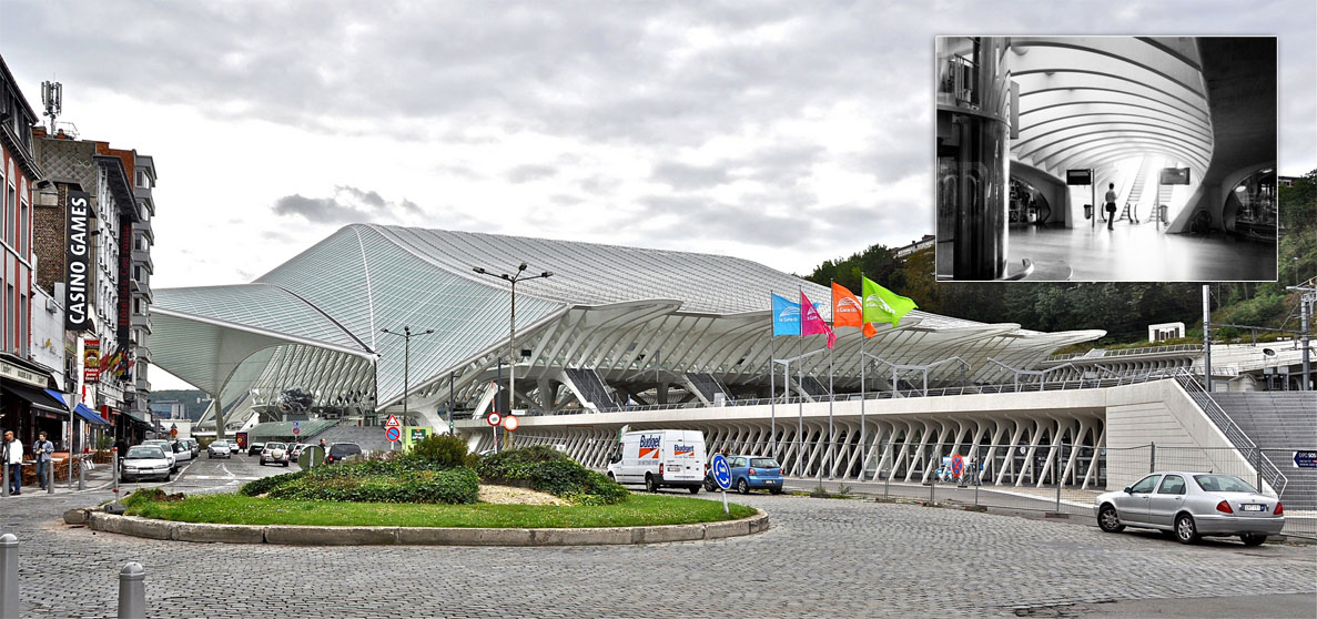 De Spaanse architect Santiago Calatrava maakt vaak op spectaculaire wijze gebruik van materialen als beton. Hier is het vernieuwde station Luik-Guillemins te zien, waarbij Calatrava de parkeergarage in de heuvel heeft ingegraven. (Foto’s: Flickr)