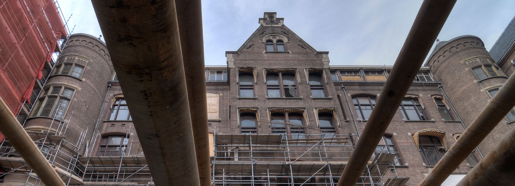“Toen wij door constructeur Van Rossum bij het project werden betrokken, werd snel duidelijk dat het geotechnisch uitdagend zou worden”, vertelt Van der Stoel. “De plannen voorzagen onder andere in de bouw van een tweeënhalfl aags kelder op de voormalige binnenplaats. Voor de bouwkuip hiervan moesten er damwanden op ongeveer een halve meter vanaf de gevel worden geplaatst, terwijl het diepste deel van de bouwkuip moest worden ontgraven tot bijna elf meter beneden NAP. En dat allemaal bij een historisch pand uit 1898, gefundeerd op houten palen, in het hartje van de binnenstad met in de directe omgeving allerlei kwetsbare gebouwen. En dan ook nog eens een pand vol monumentale details die niet beschadigd mochten raken.”