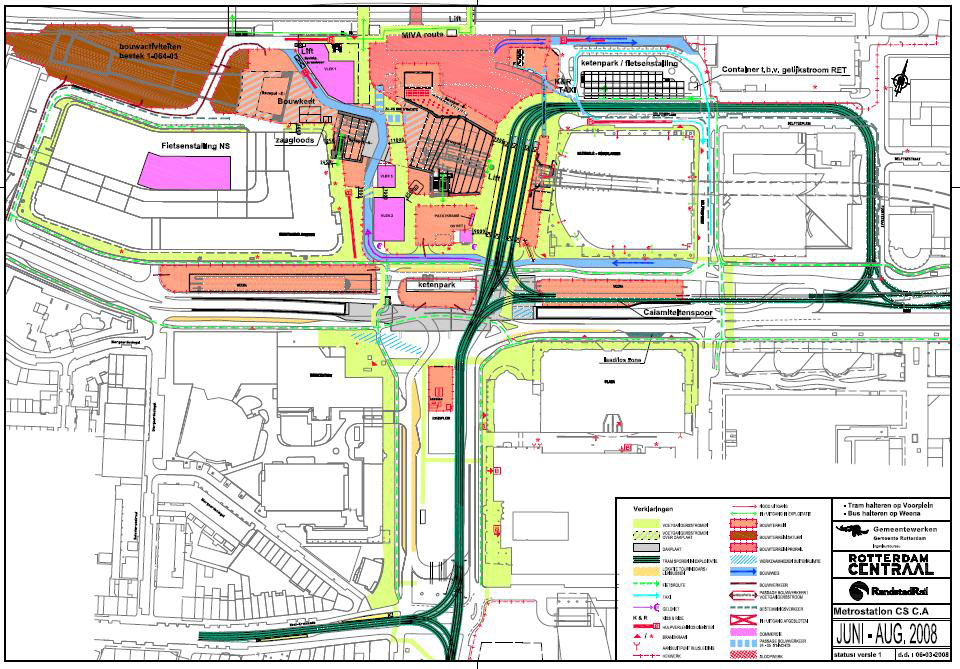 Een bouwfaseringskaart die de situatie van juni tot en met augustus 2008 toont. (Beeld: Ingenieursbureau Rotterdam)