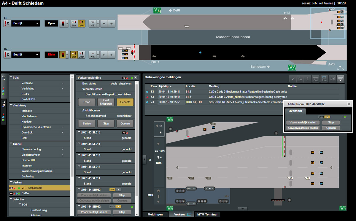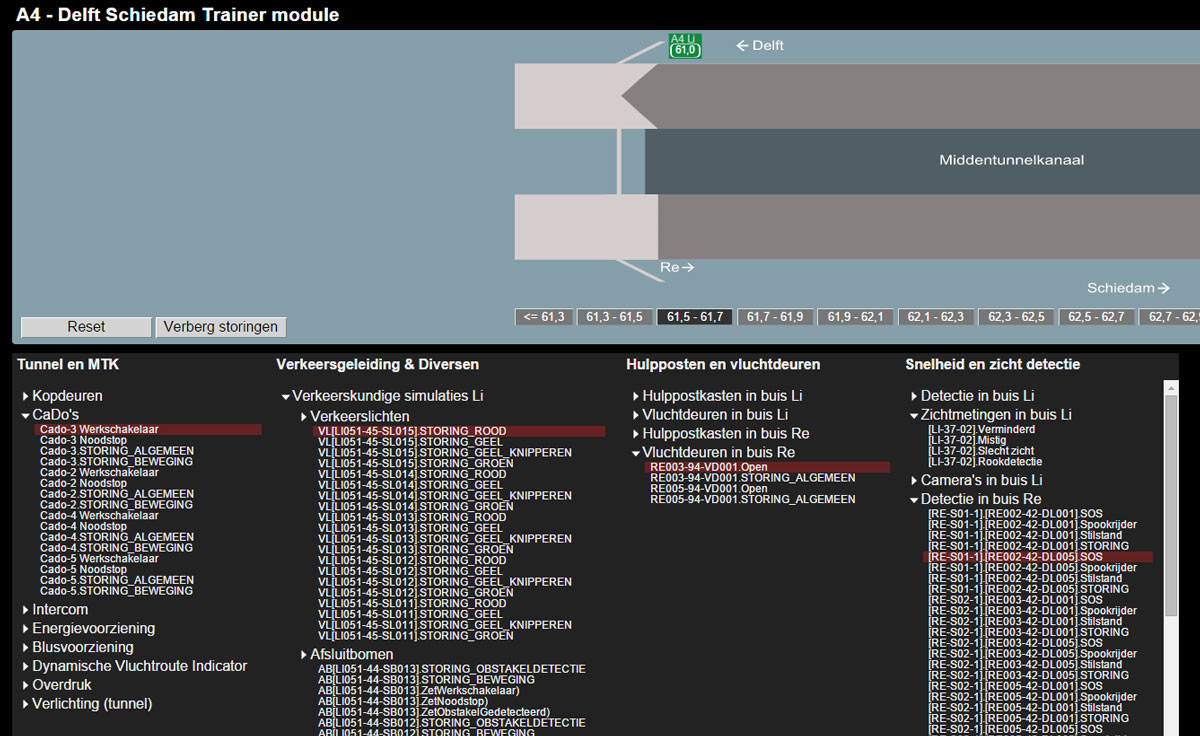 “Samen met Mark Goudzwaard, adviseur tunnelveiligheid bij de regionale dienst Rijkswaterstaat West-Nederland Zuid die de A4-tunnel straks gaat beheren, en Roel Benthem van Verkeer- en Watermanagement ben ik gaan bespreken wat we wilden”, vertelt Van der Linden. “Al vrij snel waren we eruit dat we een systeem wilden waarmee we (coördinerend) wegverkeersleiders kunnen leren hoe ze alle tunneltechnische installaties moeten bedienen, en waarmee we de leerdoelen op het gebied van bediening kunnen afdekken, zoals die zijn geformuleerd in de leidraad OTO uit de Landelijke Tunnelstandaard.”