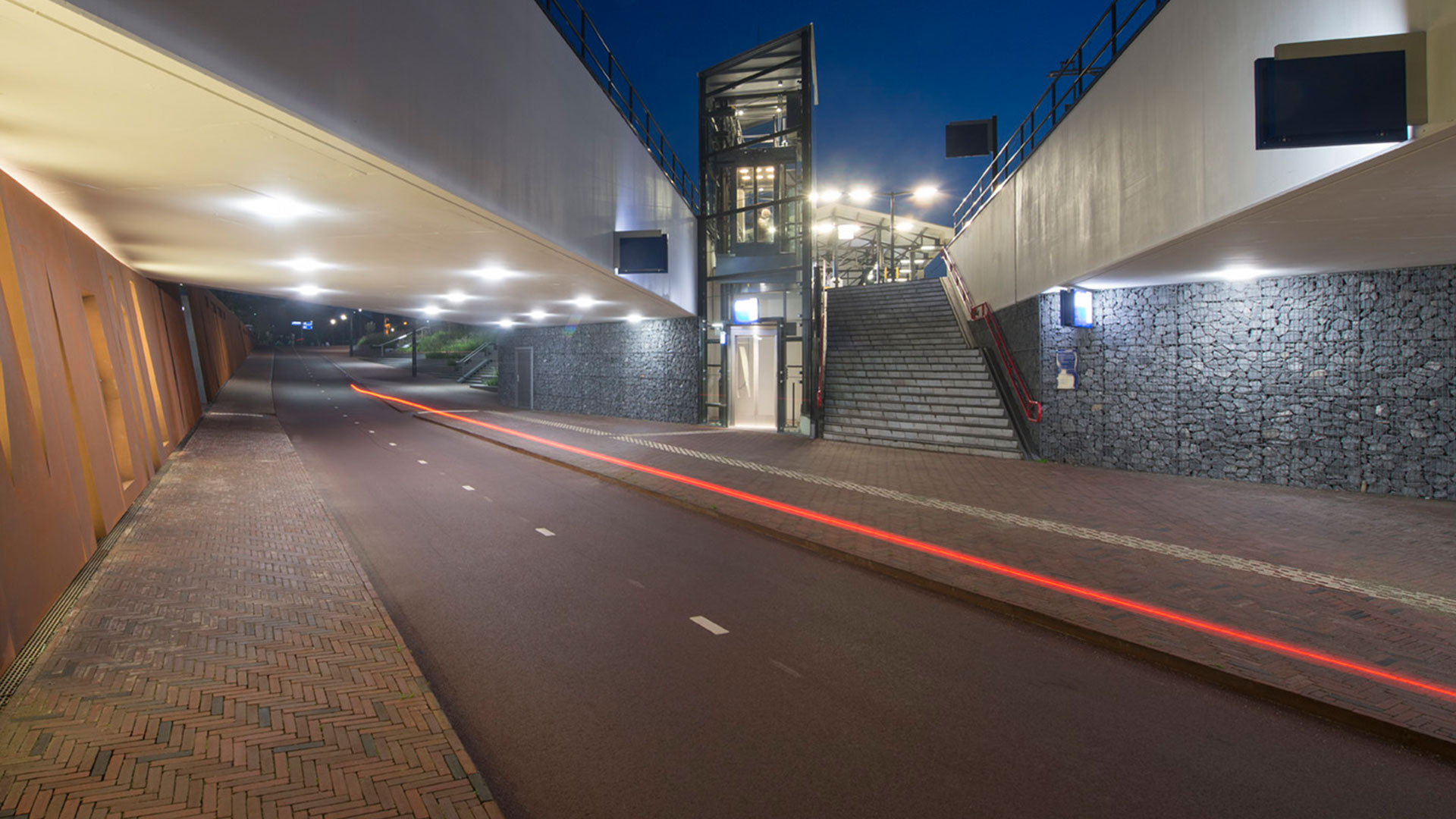 “Ondergronds krijgt sociale veiligheid nog een extra dimensie. Er is een psychologische component. Je bent onder de grond en wilt steeds weten: hoe kom ik hier weer uit? Je hebt vaak geen referentie om te kunnen bepalen waar je bent, en dat maakt onzeker. Daar komt nog bij dat ondergrondse ruimten vanwege de kosten vaak minder gedimensioneerd zijn, waardoor het nog benauwder aanvoelt. Met licht kun je al heel veel doen. En door aandacht te besteden aan de interieurkwaliteit creëer je een positiever gevoel. Een voorbeeld is de onderdoorgang van NS-station Utrecht Vaartsche Rijn, die meer functies heeft dan alleen een onderdoorgang en waar met houten plafonds, levendigheid aan de muren en goede verlichting echt aandacht is besteed aan de interieurkwaliteit. Dat kon daar omdat er ook winkels komen, maar vaak is er geen geld voor dit soort ‘extra’s’.”