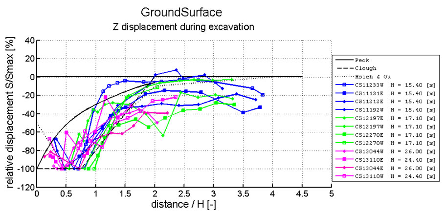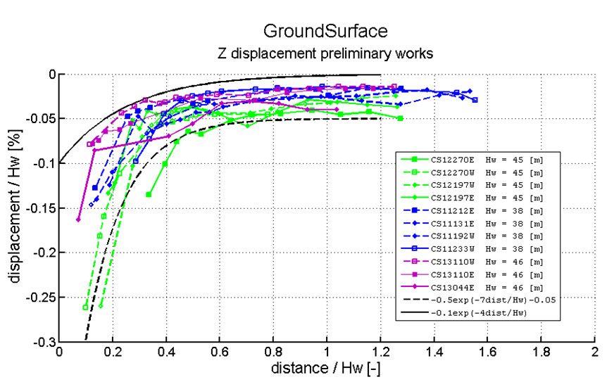 De meeste methoden om de respons van gebouwen te voorspellen, zijn oorspronkelijk ontwikkeld voor boortunnels of voor gebouwen met een fundering op staal. Aan de hand van monitoringdata van de Noord/Zuidlijn heeft Korff deze methoden gevalideerd voor gebouwen op palen. In de drie onderzochte diepe ontgravingen bleken werkzaamheden voorafgaand aan de ontgraving (zoals het verleggen van kabels en het maken van de diepwand) de grootste impact op het maaiveld en de gebouwen te hebben, niet de ontgraving zelf. Het voorwerk was verantwoordelijk voor 55 tot 75 procent van de grondzakkingen en 55 tot 65 procent van de zakkingen bij gebouwen. Het onderzoek laat verder zien dat de maaiveldzakkingen achter de bouwputwanden groter zijn dan de wandvervormingen.