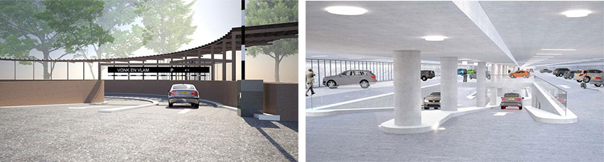 Visualisaties van de nieuwe parkeergarage. (Beeld: Studio Studio Leon Thier architecten)