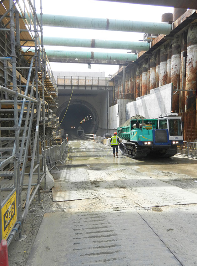 Om tot de kortste projectlengte met de langste boorlengte te komen, werden boorterpen aangelegd voor de start- en ontvangstschachten van de tunnelboormachine. - Omhulling gewipalen