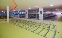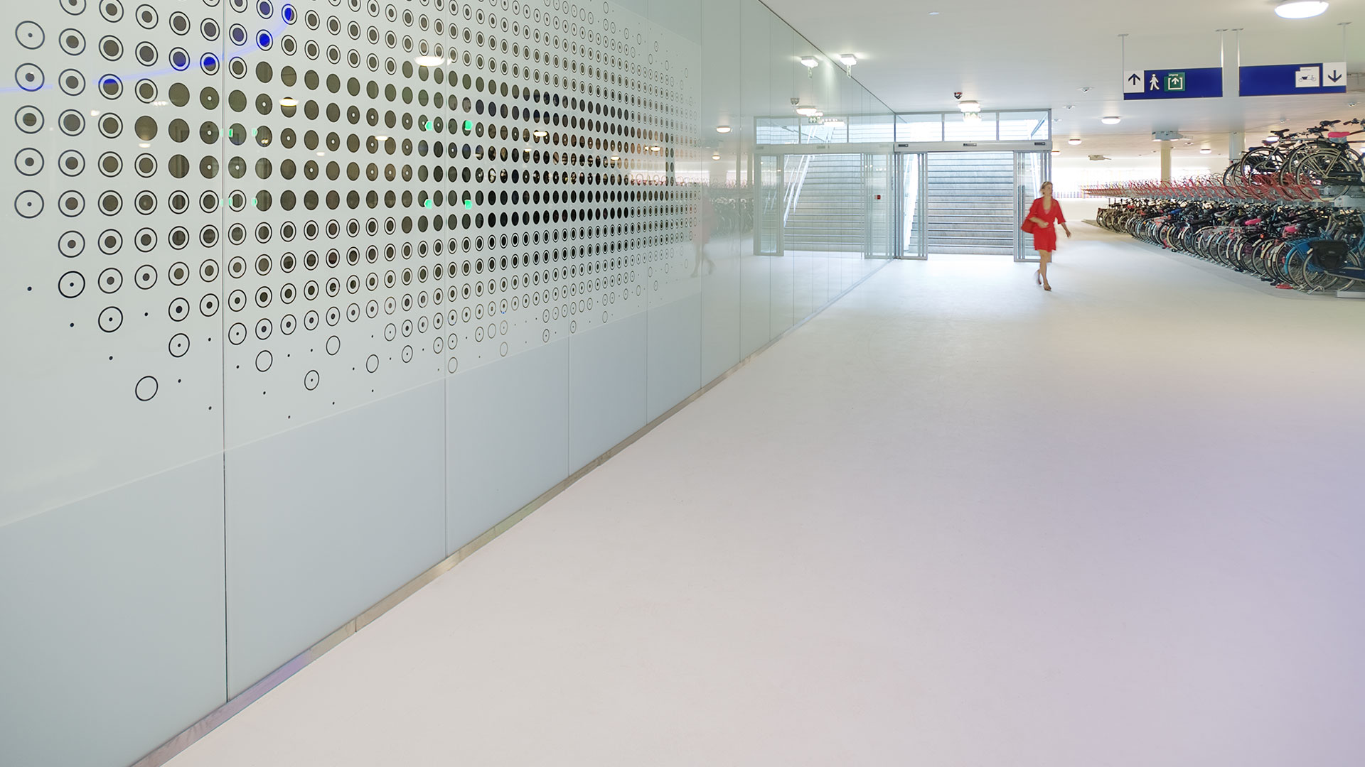 Van der Ree vult aan: “De speelruimte die we kregen, was een belangrijke succesfactor. Doordat de opdrachtgever zich voor het ondergrondse deel heeft beperkt tot de hoogst noodzakelijke functionele eisen, konden we met een vernieuwend ontwerp komen. Neem de ‘signing’ en ‘routing’. De opdrachtgever had hierover geen uitgebreide eisen opgenomen, omdat de uiteindelijke beheerder nog niet bekend was op het moment van aanbesteding. Daardoor hebben we een absoluut overzichtelijke en sociaal veilige stalling kunnen ontwerpen zonder al die borden die in de meeste NS-stallingen hangen en een rommelig beeld geven. Juist door de visuele rust en de heldere logistiek weten mensen perfect hun plek en weg te vinden. In deze stalling is beleving de focus geweest. Dat is te zien en het wordt door iedereen gewaardeerd, zowel door de fietsers als de beheerders in de stalling. Het project toont verder aan dat het ontwerpen van ondergrondse ruimten een vak apart is én een vak met toekomst.”