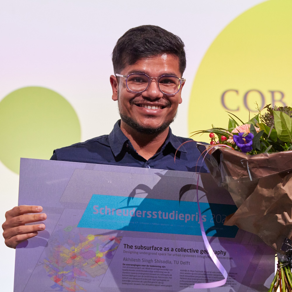 Akhilesh rondde zijn studie aan de TU Delft in juli 2023 af en ziet in het winnen van de Schreudersstudieprijs een mooie kans om zich verder te verdiepen in integraal ondergronds ruimtegebruik. “Ik heb een fascinatie voor de ondergrond. Bij de start van mijn onderzoek vond ik nog niet veel erkenning voor een holistische benadering. De prijs is daarom voor mij belangrijk.”