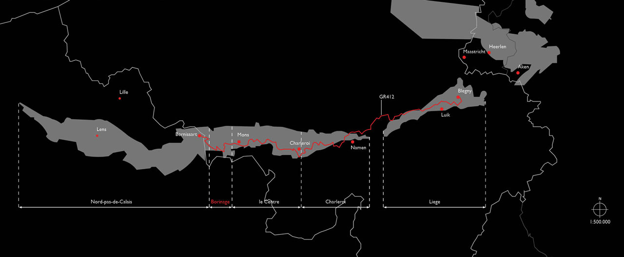 Ruim 1100 enorme bergen ontginningsafval liggen verspreid over de Waalse steenkoolbekkens als de enige fysieke nalatenschap van de mijnwerkers. Het werk van de kompels is letterlijk in rook opgegaan. De langeafstandswandeling GR412 leidt over de Waalse steenkoolbekkens. Een wandeling van 280 kilometer door postindustriële landschappen toont ons met weemoed de restanten van een ooit florerende industrie. Een deel van deze wandeling loopt over de Borinage. Op de top van één van de tientallen bergen ontginningsafval daalt de wandelaar af de geschiedenis in. Onder de oppervlakte van het puin ligt een schuilplaats voor de wandelaars met sobere voorzieningen en een overnachtingsplek. Het is een ondergronds gebouw waarin ik de eigenheid van streek heb willen uitdrukken in ruimte en atmosfeer. Ik heb het ondergrondse leven van de mijnwerker willen weergeven.