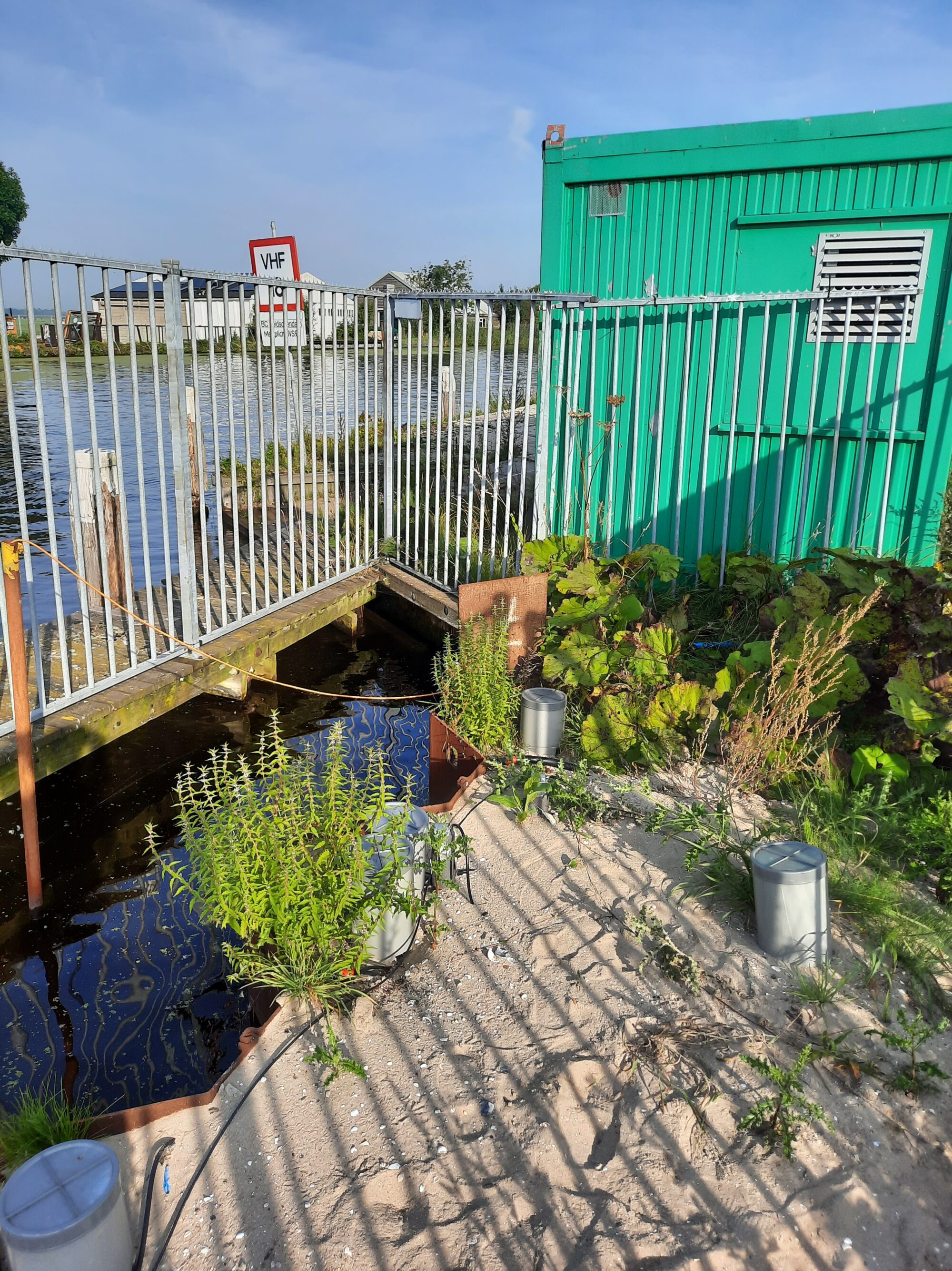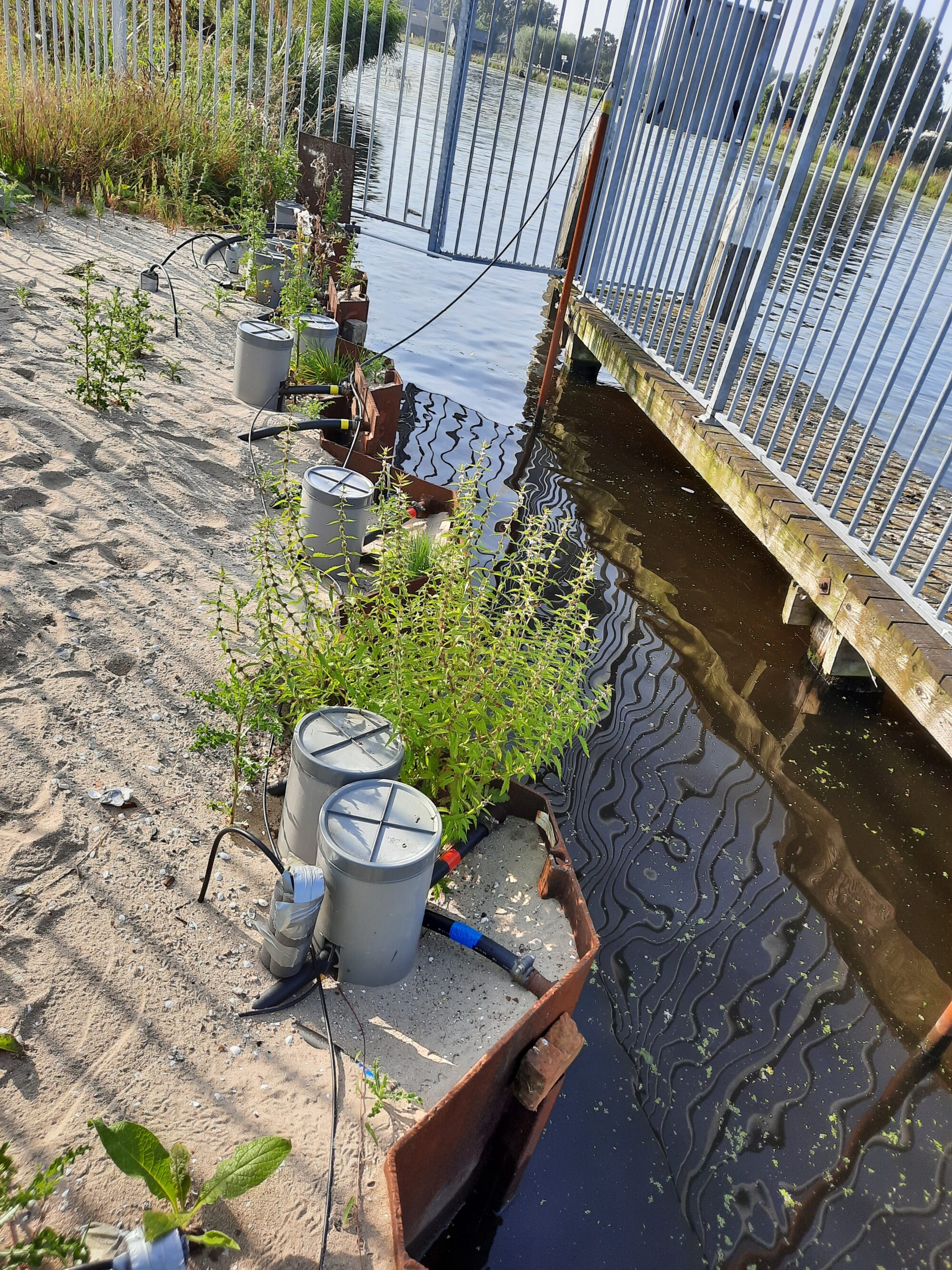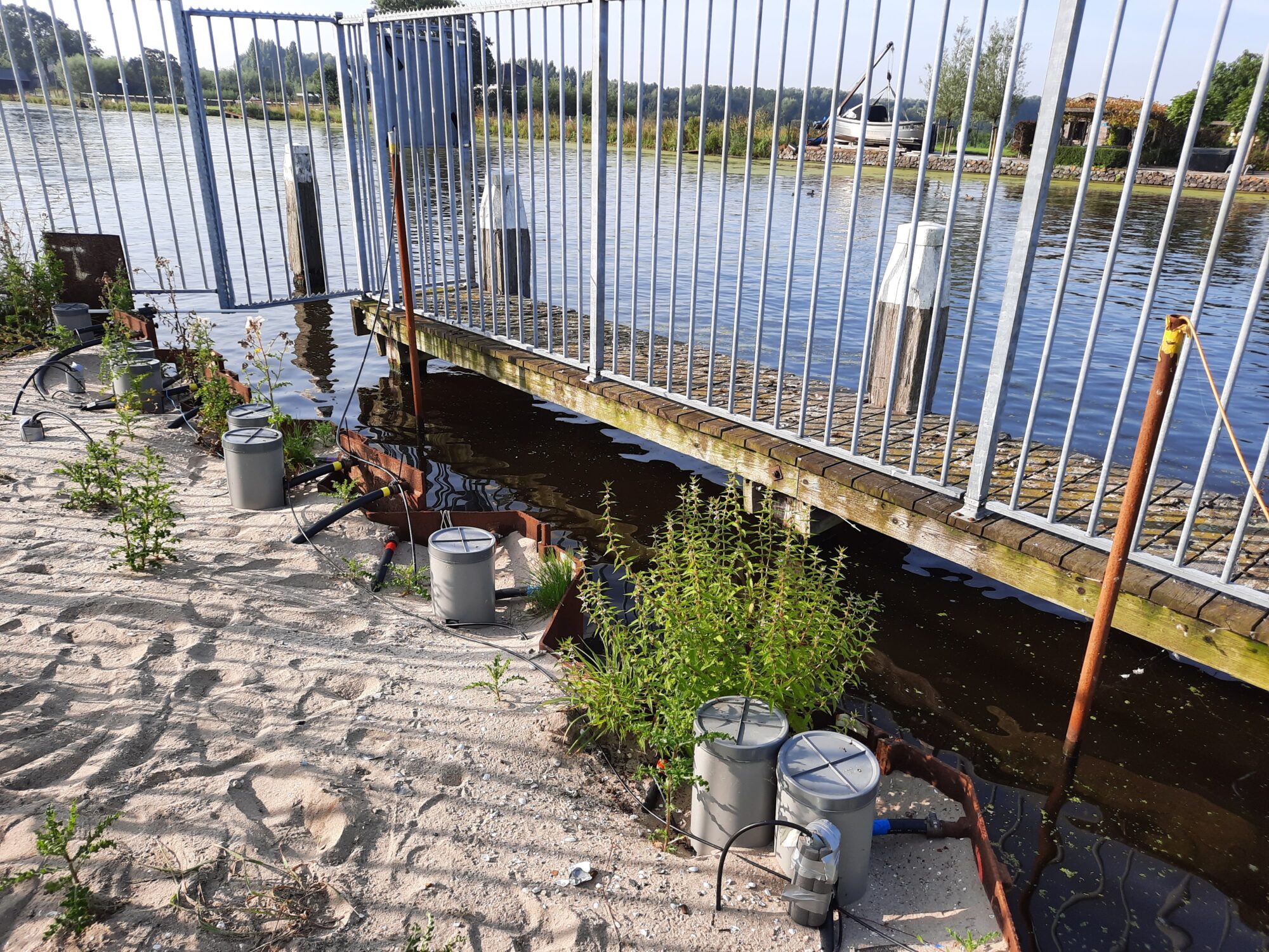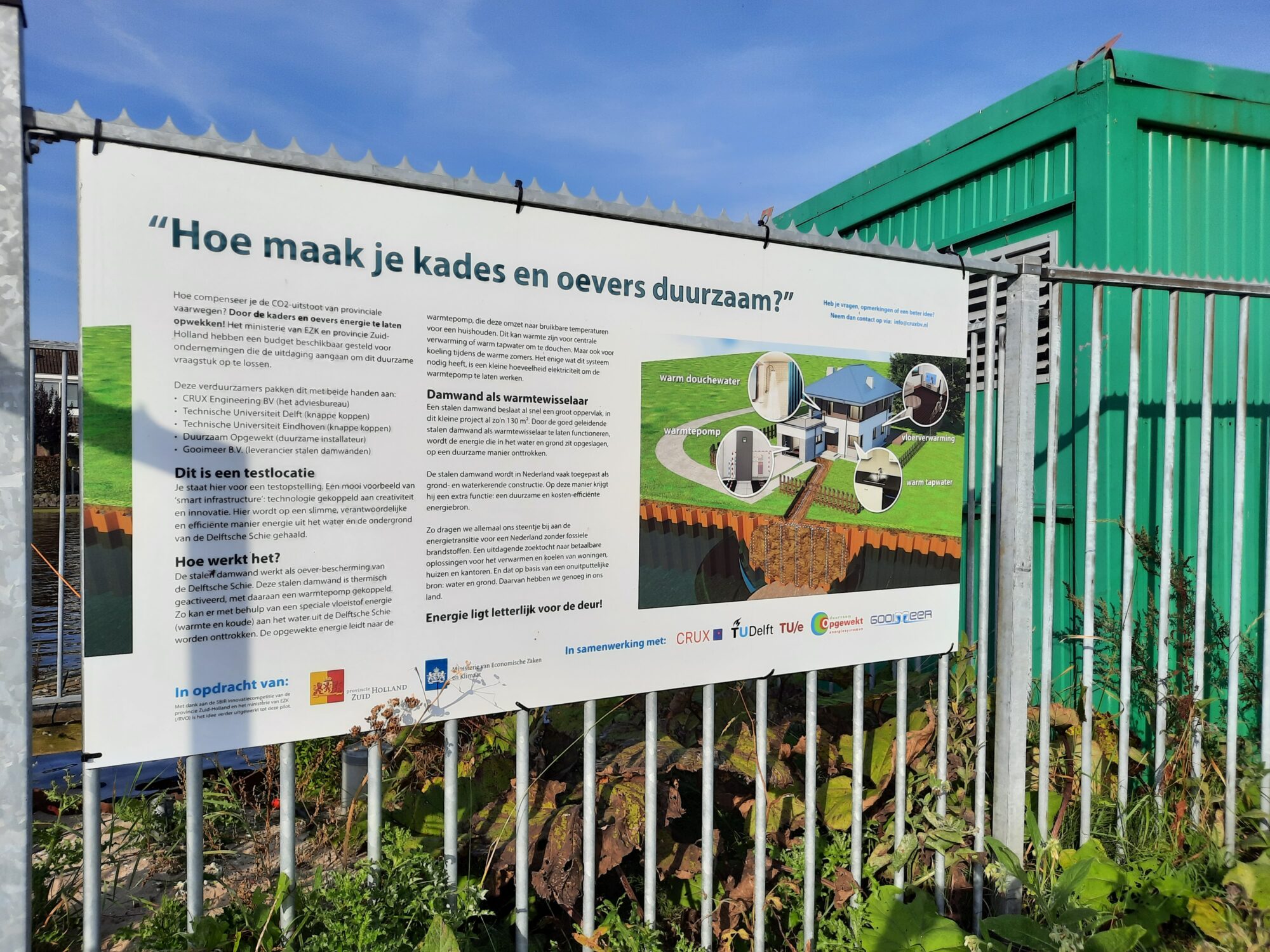 Om de mogelijkheden van dergelijke energiedamwanden goed in beeld te brengen, vindt vlak bij het buurtschap De Zweth een tweejarige proef plaats. Op een opslagterrein van de provincie Zuid-Holland langs de Delftse Schie is een proefopstelling aangebracht. (Foto’s: CRUX)