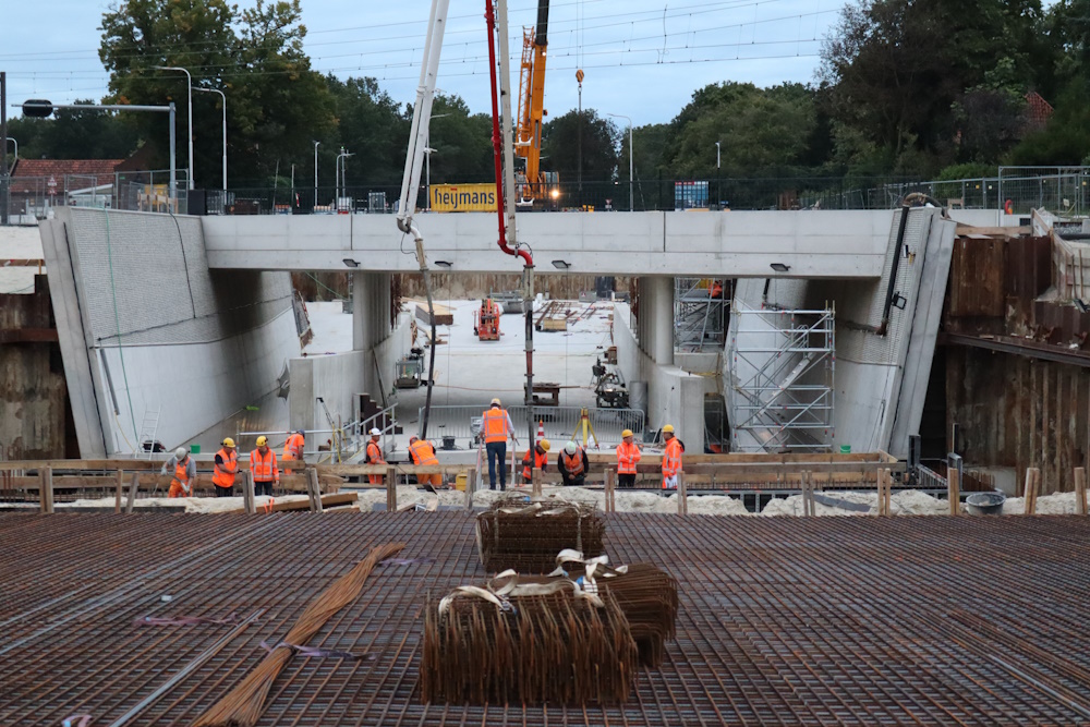 Bij een spooronderdoorgang in Rijen (Vijf Eikentunnel) is zelfhelend beton gecombineerd met reductie van horizontale wapening. Het moet leiden tot een duurzamer resultaat met een langere levensduur en beperkte beheerkosten. De Vijf Eikentunnel is afgelopen zomer in gebruik genomen, ongeveer een jaar na de stort van de ondergrondse wanden voor de pompkelder. De eerste bevindingen zijn in alle opzichten positief. Komende jaren blijven ProRail en Heijmans samen met de projectpartners de staat van de spooronderdoorgang volgen.
