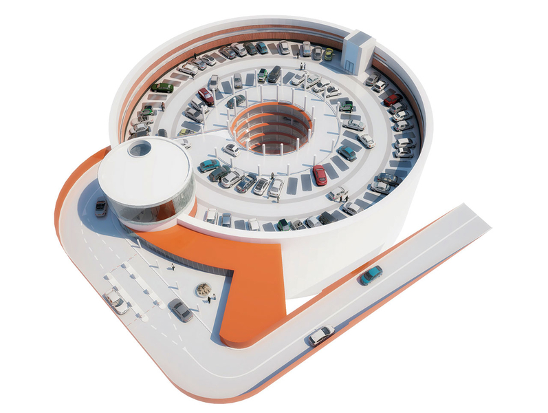 Door de ronde vorm neemt de garage minder ruimte in en is ze overzichtelijk en verkeersveilig voor de gebruiker. (Beeld: JHK)