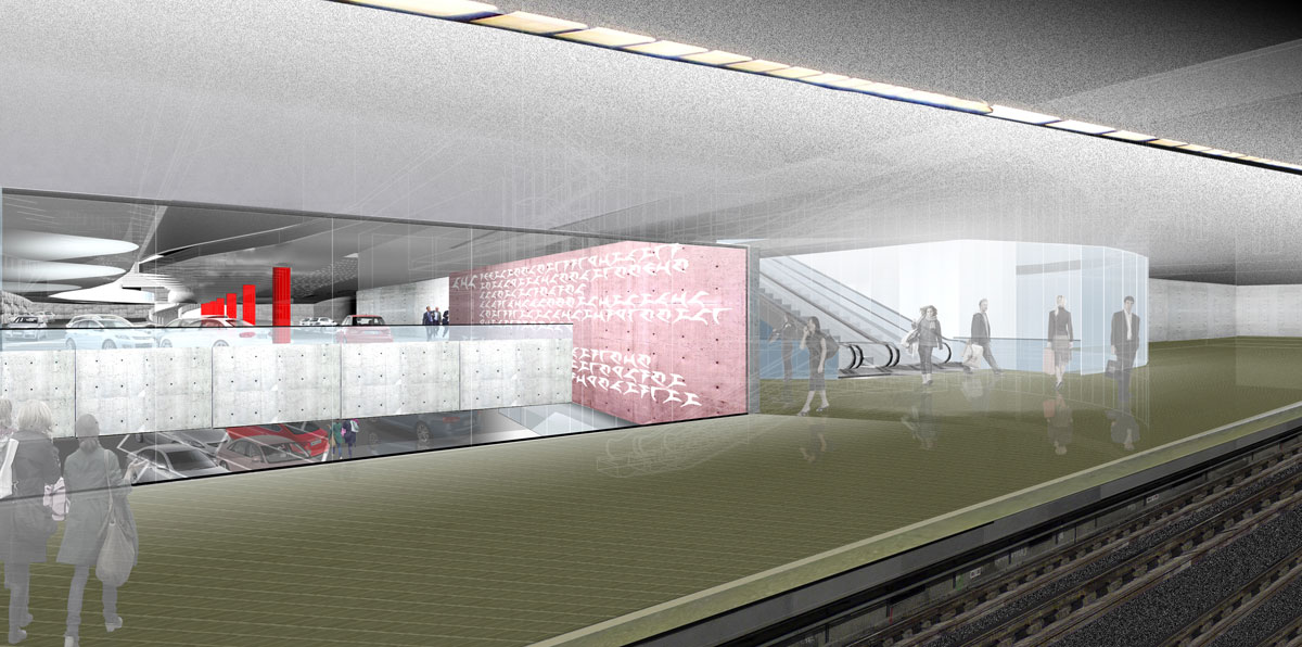 De neobarokke opera wordt het centrum van het plein. Ondergronds komen drie niveaus voor bijna vierhonderd parkeerplaatsen, een auto- en een premetrotunnel. Ook wordt het bestaande premetrostation bij de opera vernieuwd en komt er een tweede station op vijftien meter diepte. Dankzij een lichtkoker van vierentwintig meter breed reikt het daglicht tot op de onderste verdiepingen.