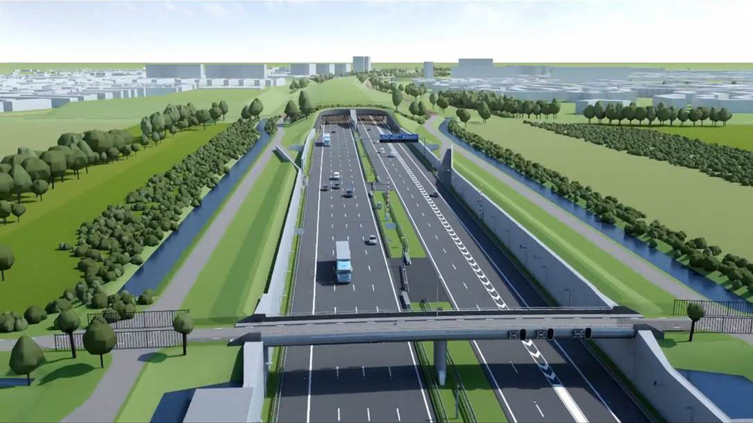 Rijkswaterstaat legt met A4all 7 kilometer nieuwe snelweg aan van Delft tot aan het Kethelplein. Van de 7 kilometer wordt 2,6 kilometer van de nieuwe weg half verdiept aangelegd (vanaf Delft). Hierna volgt 1,4 kilometer verdiepte weg tot aan de bebouwing bij Vlaardingen en Schiedam. Daar verdwijnt de snelweg in een landtunnel van 2 kilometer. Hierna kruist de A4 het knooppunt Kethelplein om vervolgens aan te sluiten op de bestaande A4 naar de Beneluxtunnel en de A20. (Beeld: Rijkswaterstaat/A4all)