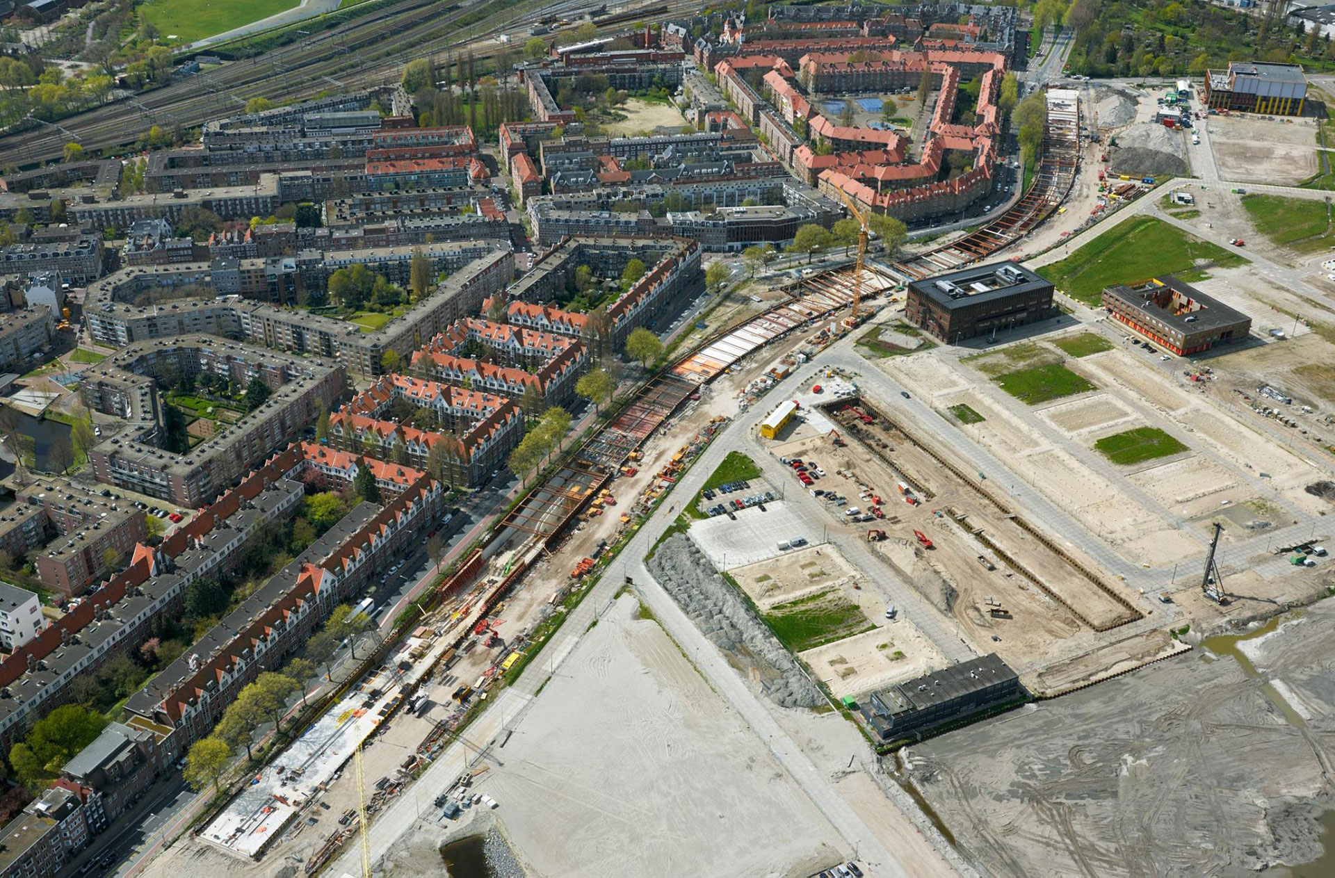De aanleg van de Spaarndammertunnel, april 2016. (Foto: Aerophoto Schiphol)