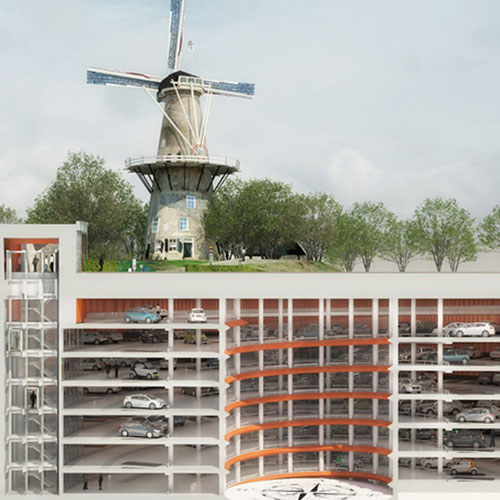 De Combinatie Parkeergarages Leiden Dura Vermeer-BESIX realiseert in een DBM-contract twee parkeergarages in de binnenstad van Leiden. De cilindervormige parkeergarage aan de Lammermarkt, circa 22 meter diep, met 525 parkeerplaatsen over zeven lagen, is inmiddels zo goed als afgerond. De opening staat gepland in het voorjaar van 2017. De bouw van de ovaalvormige parkeergarage aan de Garenmarkt, met 425 parkeerplaatsen over vijf lagen, start maart 2017. Na realisatie is de Combinatie verantwoordelijk voor vijftien jaar onderhoud.