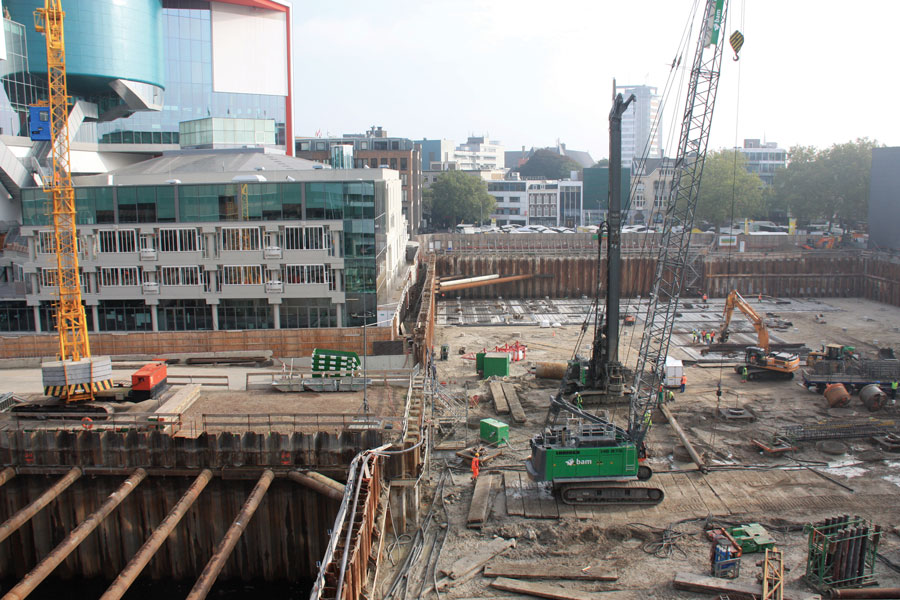 “De bouwmethodiek dicteert een star ritme van faseringen. Het is een hele uitdaging om die allemaal te laten passen. In de beginfase hebben we wat vertraging opgelopen door de vondst van archeologische resten en vervuiling in de bovenste zes meter, maar die hebben we in kunnen lopen. We hebben tot eind april dit jaar van zeven uur ’s ochtends tot elf uur ’s avonds gewerkt. Nu zitten we weer keurig op schema en verwachten we de oplevering zoals gepland medio mei 2016.”
