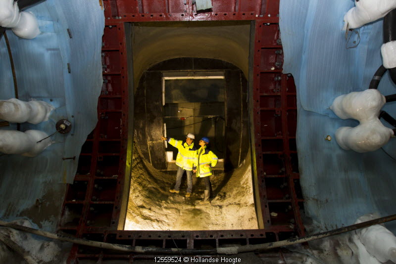Om het doorboren veilig te laten verlopen is zij opgevangen in een zogenoemd Schild Transfer Systeem (STS). Dit is een reusachtige, drukdichte trommel, die gevuld was met water om tegendruk te geven aan het grondwater. Vervolgens moesten de boorders van aannemer Saturn een waterdichte afsluiting tussen tunnel en station maken, waarna het water uit de STS kon. Nu zijn zij bezig met het verwijderen van de steunconstructie (zie foto) en pas daarna kan het deksel van de trommel af.