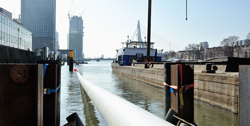 In de weekenden van 9 en 10 maart en dat van 23 en 24 maart staan in Rotterdam indrukwekkende ondergrondse werkzaamheden op het programma. Aannemersbedrijf Visser & Smit Hanab legt dan twee goed geïsoleerde warmteleidingen aan – een aanvoer- en een retourleiding, elk met een lengte van vijftienhonderd meter en een diameter van zestig centimeter – via horizontaal gestuurde boringen.