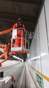Laatste check nieuw geplaatste tunnelcamera. (Foto: Vialis)