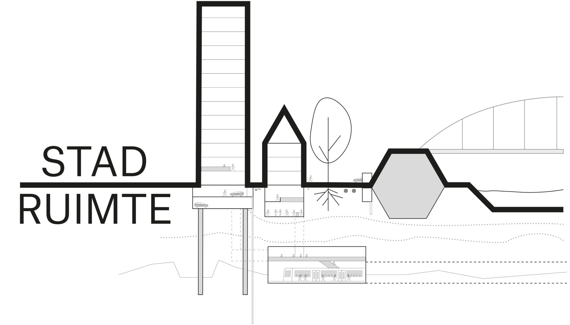“Binnen Stad x Ruimte maken we gebruik van eerdere ontwerpstudie-ervaringen”, aldus Hans de Boer. “De nadruk ligt op studie. In een project als dit is er geen vooraf uitgewerkt programma van eisen. Dat geeft vrijheid om je onderzoeksdoelen te bepalen. Voor Stad x Ruimte ging de studie in eerste aanleg om meer te leren over hoe mensen ondergronds verblijf ervaren en welke architectonische aspecten daarbij spelen. We hebben de doelstelling opgerekt, omdat we zagen dat het in samenhang beschouwen van verschillend ondergronds ruimtegebruik een oplossing door uitruil van functies mogelijk maakt.”