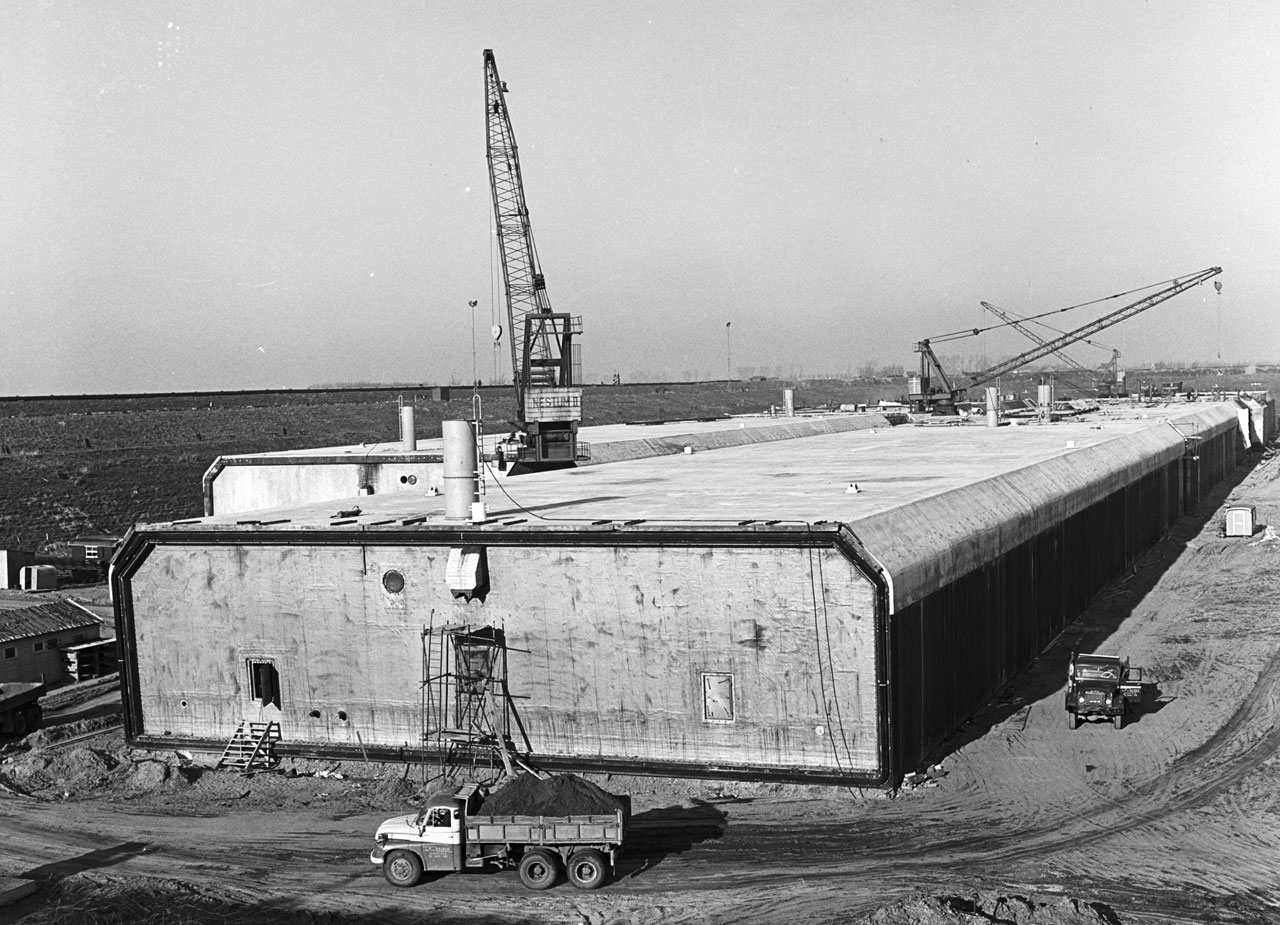 Voor de bouw van de Heinenoordtunnel(segmenten) is het bouwdok in Barendrecht gebouwd, waar later ook diverse andere Nederlandse tunnelsegmenten gebouwd zijn. De tunnelsegmenten zijn 8,8 meter hoog, 30,70 meter breed en 115 meter lang. (Foto: beeldbank Rijkswaterstaat)