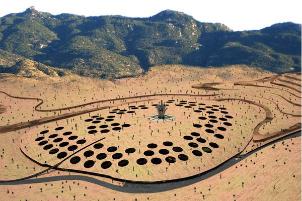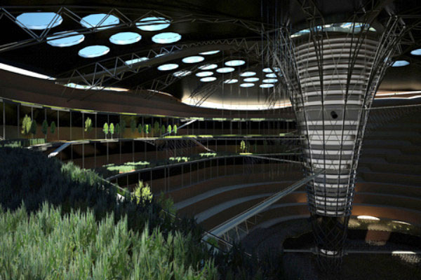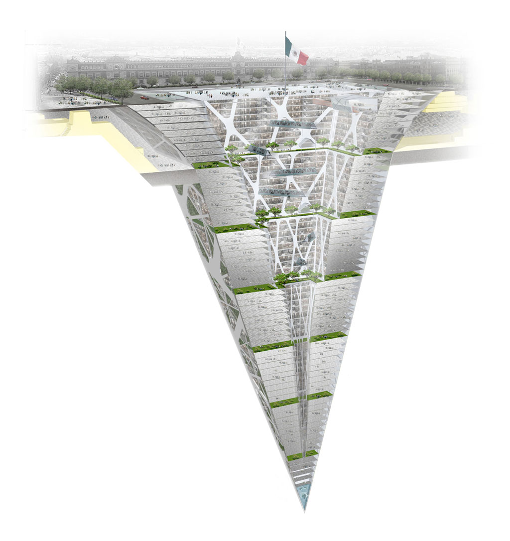 Het magazine eVolo organiseert elk jaar een Skyscraper Competition. In 2007 bedacht BNKR Arquitectura een earthscraper voor Mexico-Stad. Een omgekeerde piramide van driehonderd meter diep waarbij het midden leeg blijft, zodat alle vijfenzestig verdiepingen worden voorzien van daglicht.
