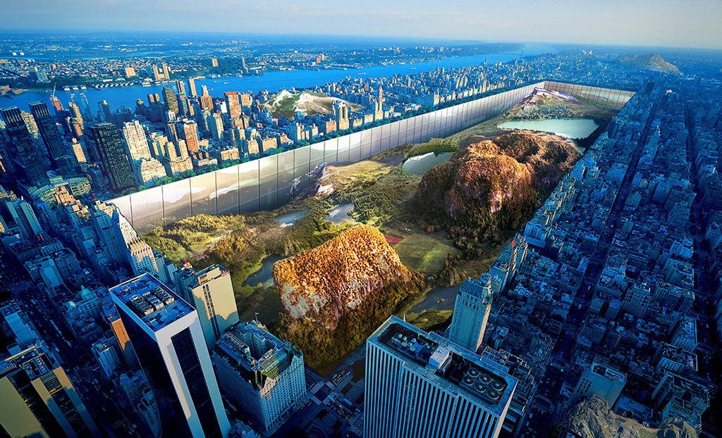 Een berglandschap midden in New York. Ontwerpers Yitan Sun en Jianshu Wu stellen voor het Central Park te ontgraven, zodat de onderliggende structuur zichtbaar wordt. De wanden van het verdiepte park worden gevormd door aaneengeschakelde flats.