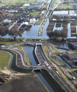 De tunnel kruist niet alleen de Ringvaart, maar ook het Bovenlandengebied, een moeraszone waarin de beschermde rugstreeppad leeft. Om te zorgen voor voldoende leefgebied voor deze zeldzame pad is een deel van het tunneldak uitgevoerd als ecologische zone met veeneilandjes. (Foto: