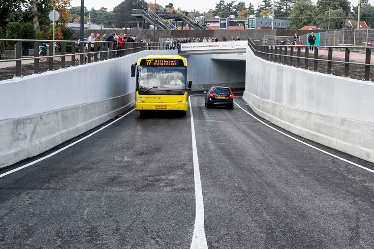 De Ketheltunnel (Foto: COB) ligt grotendeels op maaiveld en heeft twee buizen en een middenkanaal dat onder andere dient als vluchtroute. De tunnel is bijna veertig meter breed en is een categorie C-tunnel. Dat houdt in dat vrachtauto’s met gevaarlijke stoffen die kunnen exploderen, niet door de tunnel mogen.