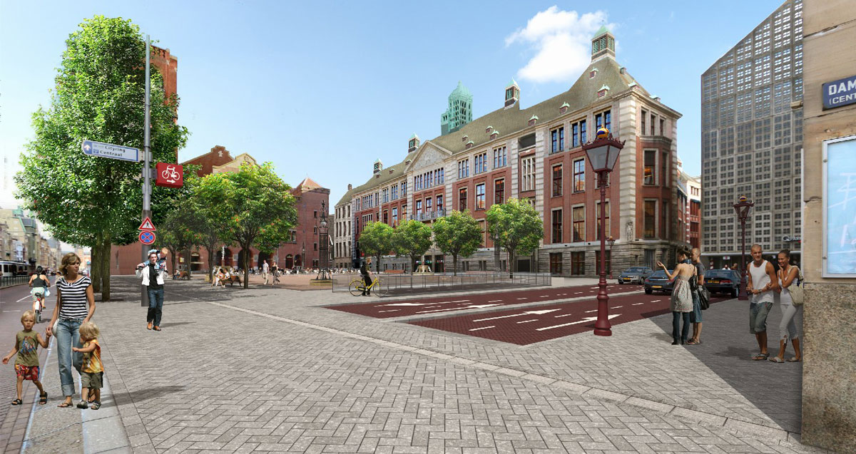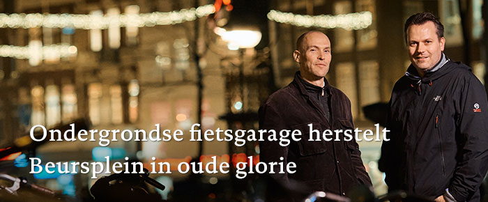 Het Beursplein in Amsterdam krijgt de uitstraling terug die architect Berlage ooit voor ogen had. Natuurstenen bestrating, laanbomen en herstel van de oorspronkelijke paardendrinkbakken en verlichtingsarmaturen vormen vanaf medio 2018 een prettig verblijfsgebied. Zonder fietsen. Onder het Beursplein komt een fietsenstalling met circa 1.700 plaatsen. De gemeente Amsterdam en de omwonenden trekken samen op. Bouwinvest en de Bijenkorf dragen financieel bij.
