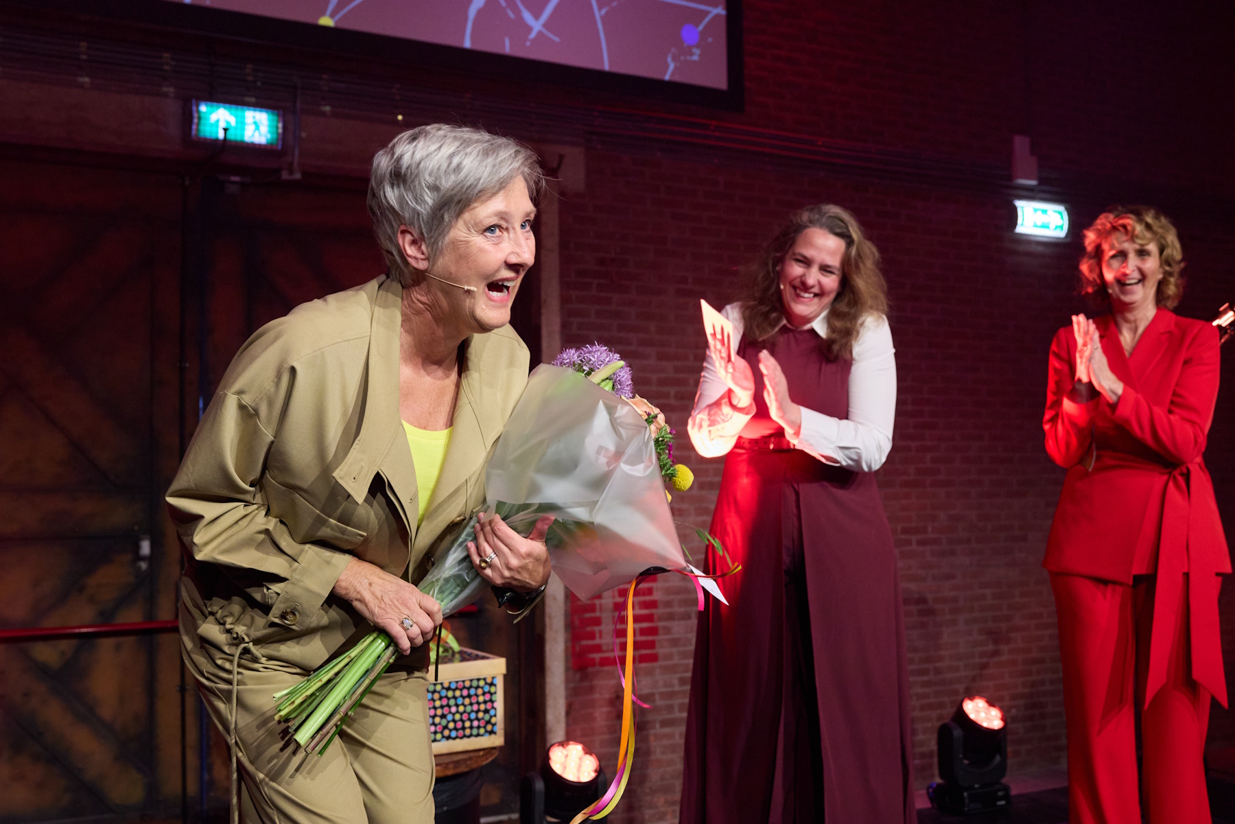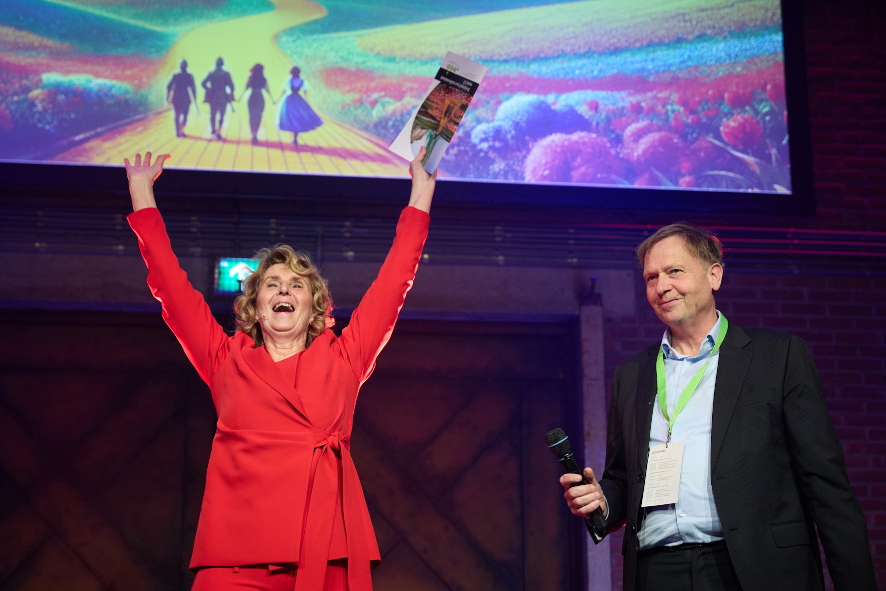Edith Boomsma en Marjolein van der Ploeg zorgden ervoor dat de Kennisarena Kabels en leidingen nooit meer door iemand zal worden vergeten. Als huidig programmamanager overhandigde Edith een versierde doos aan Marjolein, haar opvolger. Natuurlijk stond de doos symbool voor alle mensen, deliverables, de samenwerking én de toekomst van het Kennisarena-programma. Om het moment nóg memorabeler te maken, verscheen Pieter Litjens van het Fonds Fysieke Leefomgeving op het podium om aan te kondigen dat zijn programmaraad het nieuwe jaarplan van de Kennisarena wil ondersteunen met een financiële bijdrage. Het afscheid van Edith werd vervolgens afgesloten met een indrukwekkend, staand applaus!