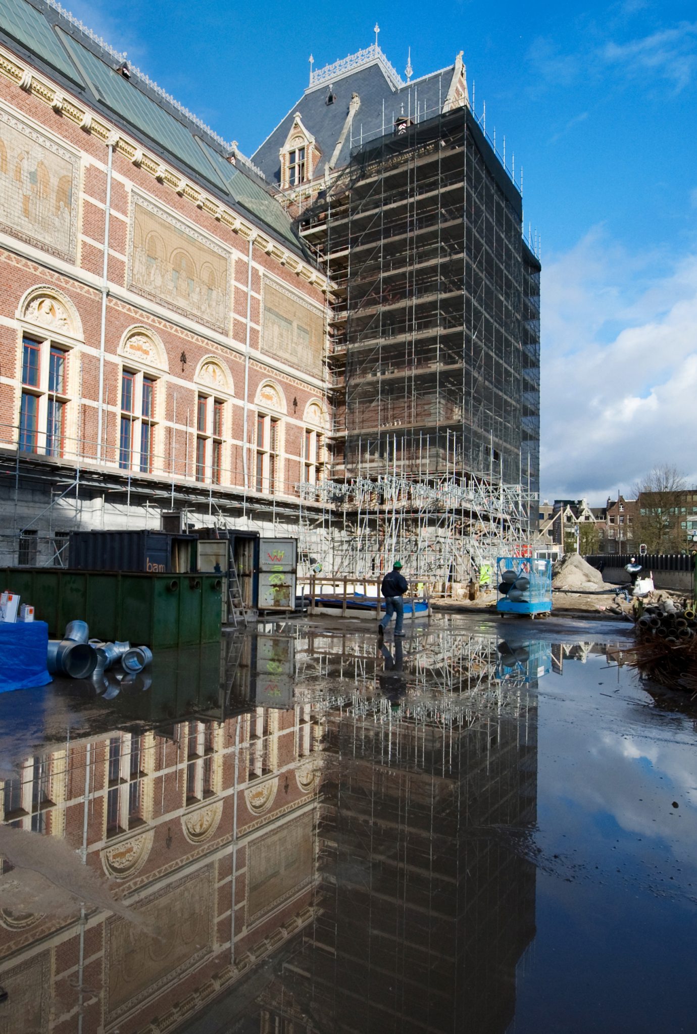 Het Amsterdamse Rijksmuseum is ontworpen door architect Pierre Cuypers en werd in 1885 in gebruik genomen. Meer dan honderd jaar later was het monumentale pand toe aan een grondige opknapbeurt, waarbij het grotendeels terugbrengen van de oorspronkelijke staat een belangrijk doel was. Voor de renovatie werd in 2000 een internationale prijsvraag uitgeschreven, die werd gewonnen door de Spaanse architecten Cruz en Ortiz. Hun plan voorzag in het verplaatsen van de hoofdingang van het museum van de twee kleine torens aan de Stadhouderskade naar de onderdoorgang van het museum, de zogeheten passage. Voor de nieuwe ingang ontwierpen de architecten een ondergronds plein ter plekke van de twee binnenplaatsen. Onder dit plein zijn kelders gemaakt voor onder andere vergaderruimten, een auditorium en een keuken.