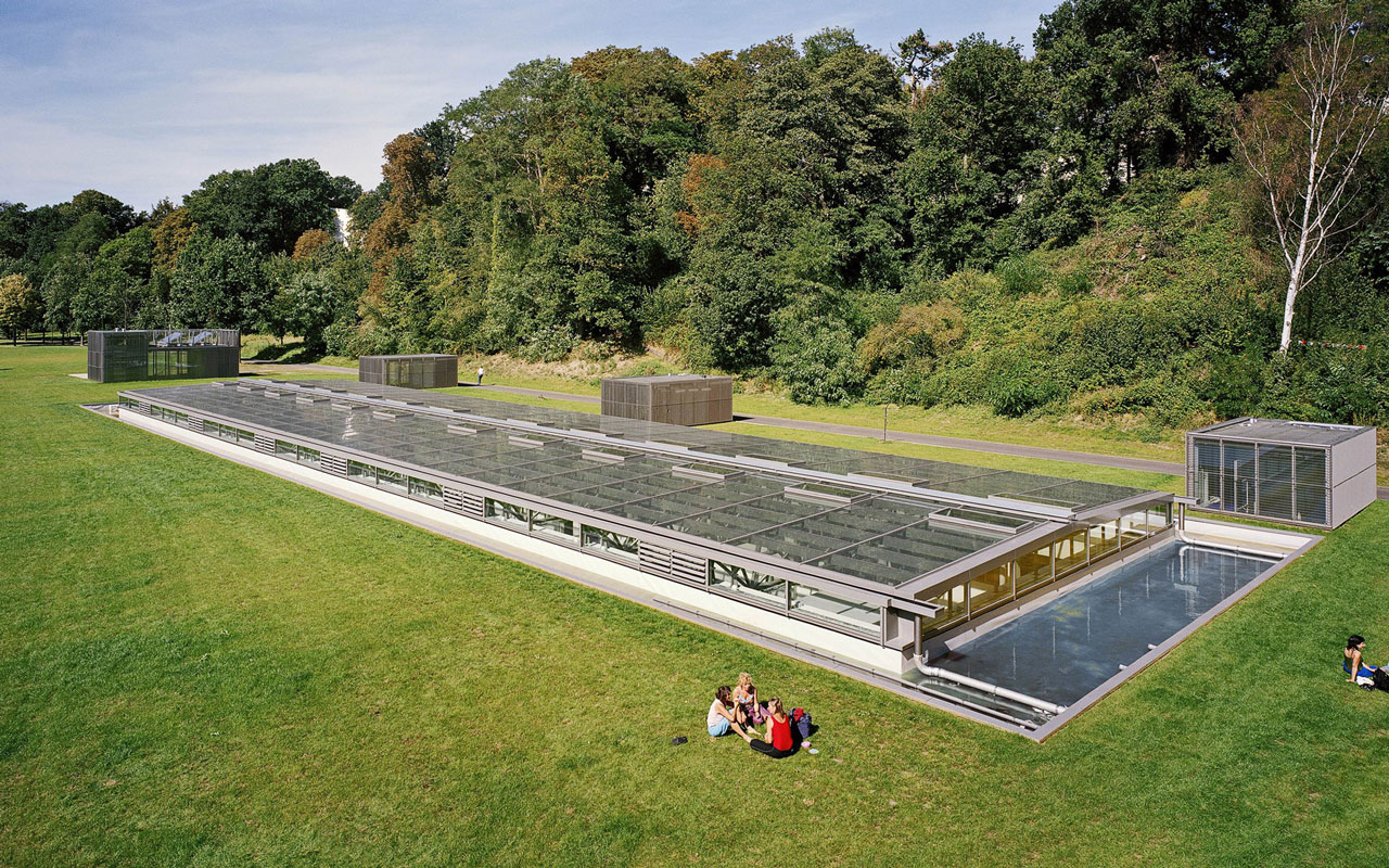 Voor de ondergrondse oplossing is onder andere gekozen om de ruimtelijke en landschappelijke kwaliteit van het monumentale, transparante hoofdgebouw in zijn parkachtige omgeving onder de helling van de stuwwal te behouden.