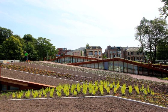 Het dak van de nieuwe ondergrondse expositievleugel steekt iets boven het maaiveld uit. Het is opgebouwd uit vier verspringende dakvlakken die ruimte bieden aan verticale lichtstroken. Via deze lichtstroken valt er indirect daglicht in de expositieruimte. Voor de dakconstructie zijn stalen liggers gebruikt. Op het dak is een openbare tuin aangelegd.