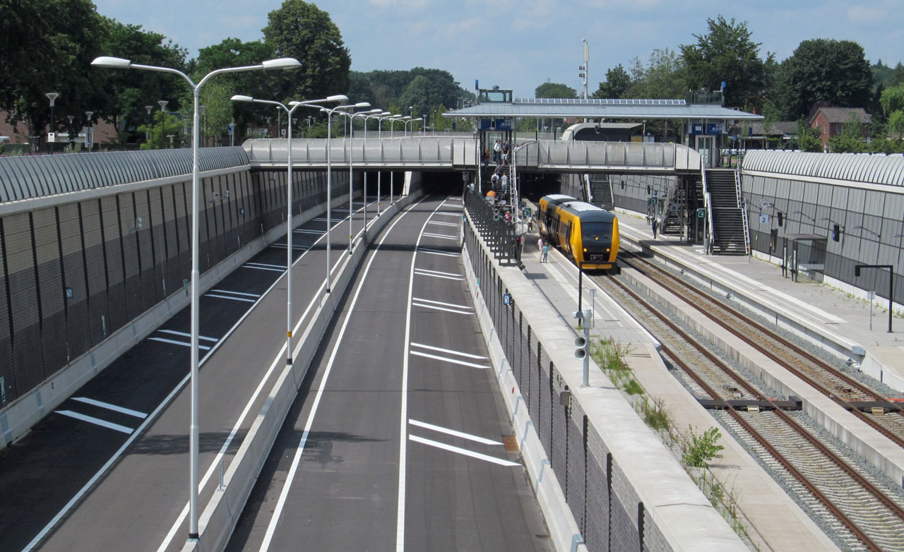 Voor het vernieuwde wegtracé is de N35 naar het noorden verplaatst en direct naast de spoorlijn aangelegd. In het centrum van Nijverdal lopen de weg en de spoorlijn door de bijna 500 meter lange tunnel en door een verdiepte open bak van ongeveer een kilometer meter lang, die aan de oostzijde van de tunnel ligt. In deze verdiepte bak bevindt zich het nieuwe treinstation. De tunnelbuizen voor het wegverkeer hebben één rijstrook en een vluchtstrook. In de toekomst kunnen de vluchtstroken worden omgevormd tot een tweede rijstrook.
