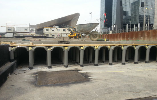 Voor de stalling is gebruikgemaakt van de wanden-dakconstructie om overlast op straatniveau zo veel mogelijk te beperken. Aan de noordkant is voor de bouwkuip gebruikgemaakt van de damwanden van het metrostation, en aan de zuidkant van de damwanden van de nieuwe Weenatunnel.