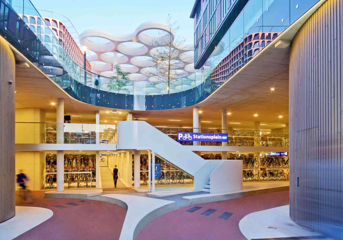 Het plein boven de fietsenstalling heeft een bijzondere overkapping met 49 ringen die elk een diameter hebben van ruim zeven meter. Deze overkapping rust op zeven kolommen. Het onderste deel hiervan bestaat uit ruim 12,5 meter hoge betonnen trompetkolommen die vanaf de onderste verdieping dwars door de stalling heen lopen. Bovenop deze kolommen staan lange stalen kolommen die 22 meter hoog zijn.