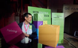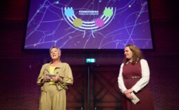 Edith Boomsma en Marjolein van der Ploeg zorgden ervoor dat de Kennisarena Kabels en leidingen nooit meer door iemand zal worden vergeten. Als huidig programmamanager overhandigde Edith een versierde doos aan Marjolein, haar opvolger. Natuurlijk stond de doos symbool voor alle mensen, deliverables, de samenwerking én de toekomst van het Kennisarena-programma. Om het moment nóg memorabeler te maken, verscheen Pieter Litjens van het Fonds Fysieke Leefomgeving op het podium om aan te kondigen dat zijn programmaraad het nieuwe jaarplan van de Kennisarena wil ondersteunen met een financiële bijdrage. Het afscheid van Edith werd vervolgens afgesloten met een indrukwekkend, staand applaus!
