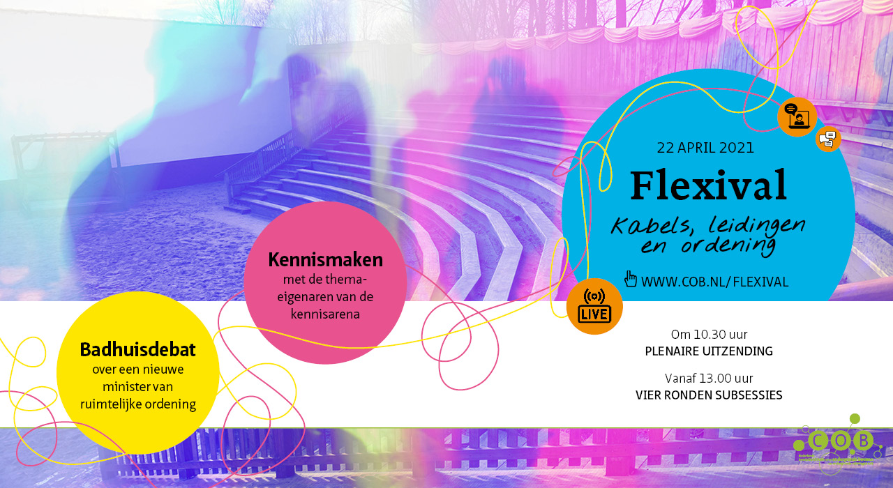 Nieuwe inzichten, dwarsverbanden en humor zijn vaste ingrediënten van het Flexival. Een congres voor out-of-the-boxdenkers en zij die dat willen worden. Kabels en leidingen en ondergrondse ordening stonden centraal op deze dag. Eerst was er een plenaire uitzending, na de lunch waren er zestien subsessies om uit te kiezen.