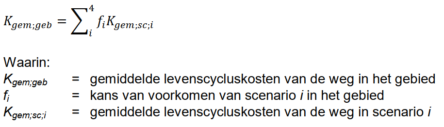 3. Bepaal voor het hele deelgebied de gemiddelde levenscycluskosten van de weg en de bandbreedte in de levenscycluskosten. De gemiddelde levenscycluskosten worden bepaald uit: