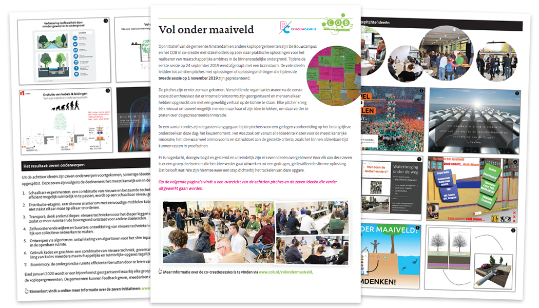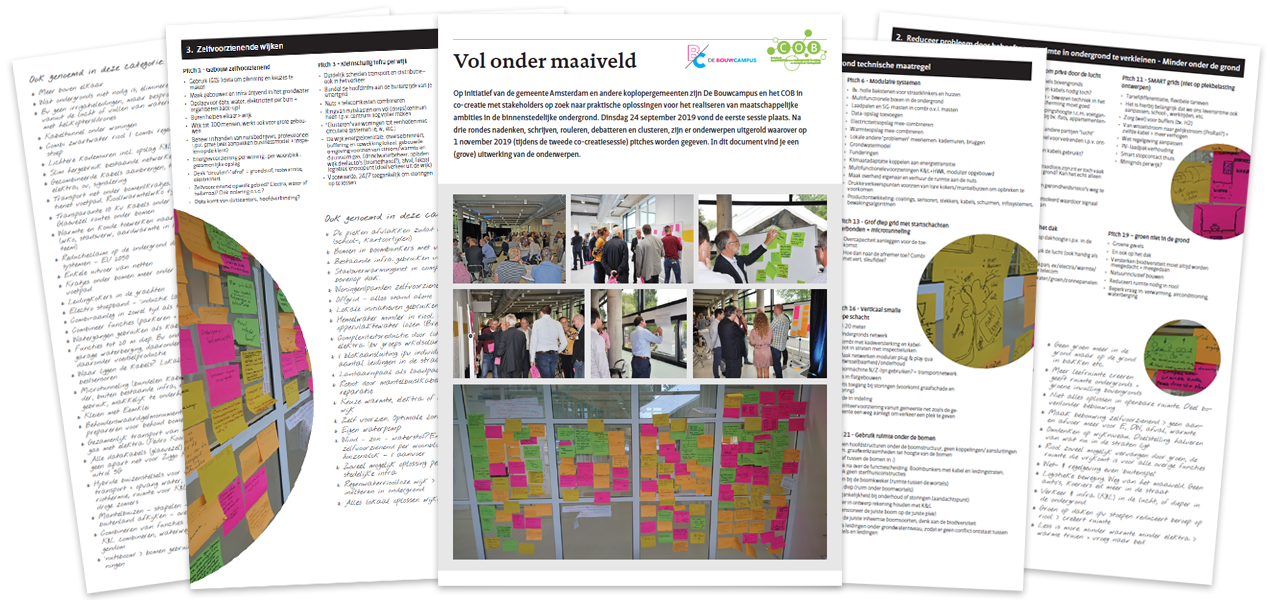 Visionairs, dwarsdenkers, innovators, vernieuwende financiers, geraffineerde ondernemers en ondernemende technici met interesse voor herinrichting van de stedelijke ondergrond doen mee aan het co-creatietraject Vol onder maaiveld van het COB en De Bouwcampus. Na twee sessies liggen er zeven kansrijke onderwerpen.