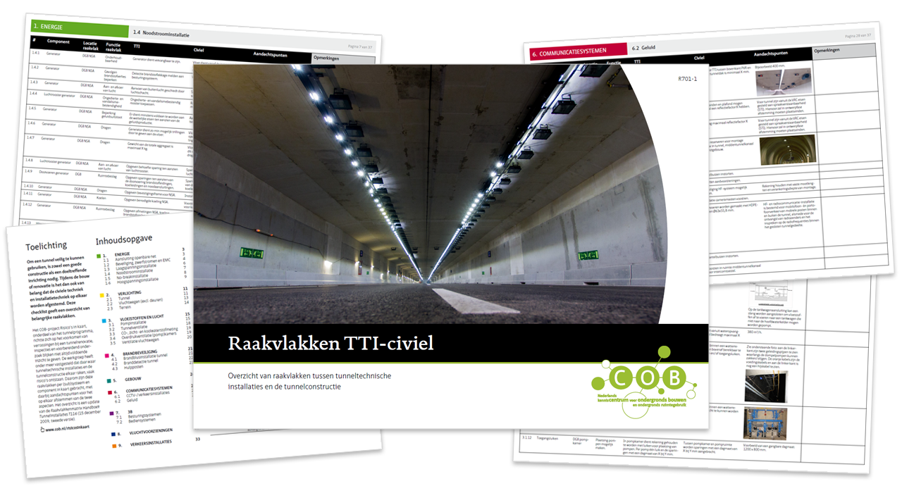In het eerdere COB-project Risico’s in kaart is onder meer vastgesteld dat daar waar de tunnelconstructie en tunneltechnische installaties elkaar raken, vaak risico’s ontstaan. Deze raakvlakken zijn in een checklist per (sub)systeem en component in kaart gebracht, met daarbij aandachtspunten voor het op elkaar afstemmen van de twee aspecten. Om de toepassing van deze checklist en het achterliggende gedachtegoed te stimuleren, is een expertteam samengesteld uit COB-netwerkleden die ruime praktijkervaring hebben op het snijvlak van civiele techniek en tunnelinstallaties.
